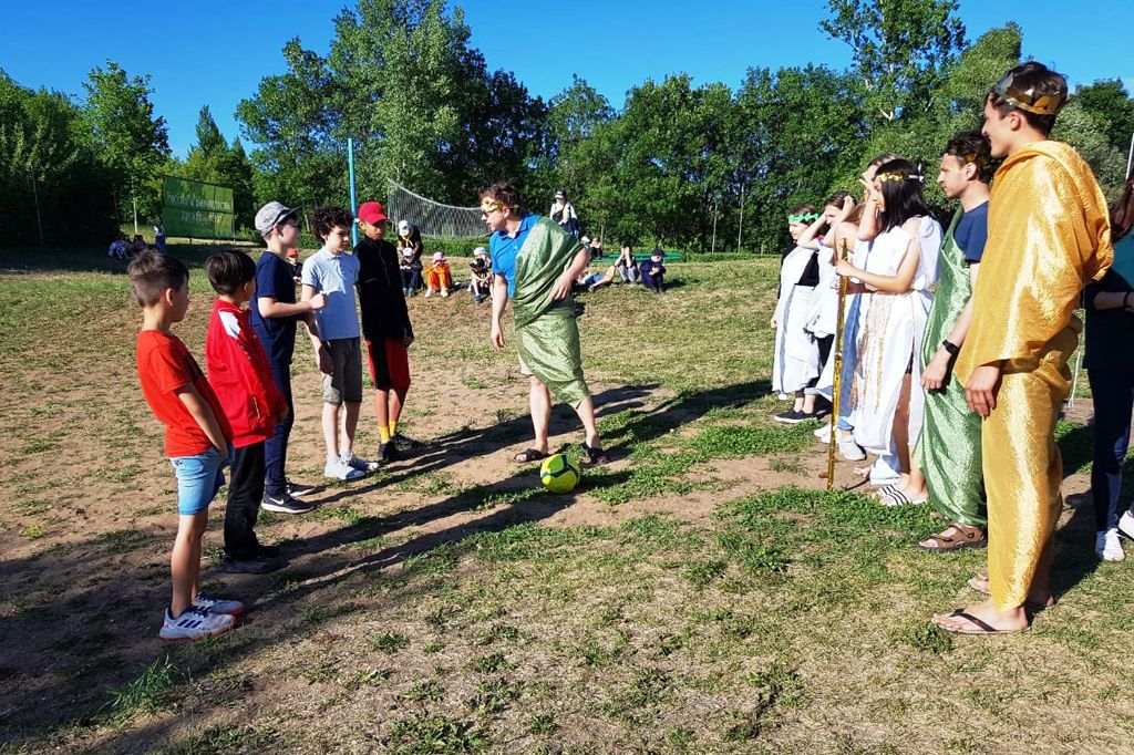 В творческой форме в лагере были открыты Олимпийские игры. На сцене встретились Боги и Богини Олимпа. А позже состоялась необычная игра в футбол, к которой вожатые и пионеры подошли креативно.